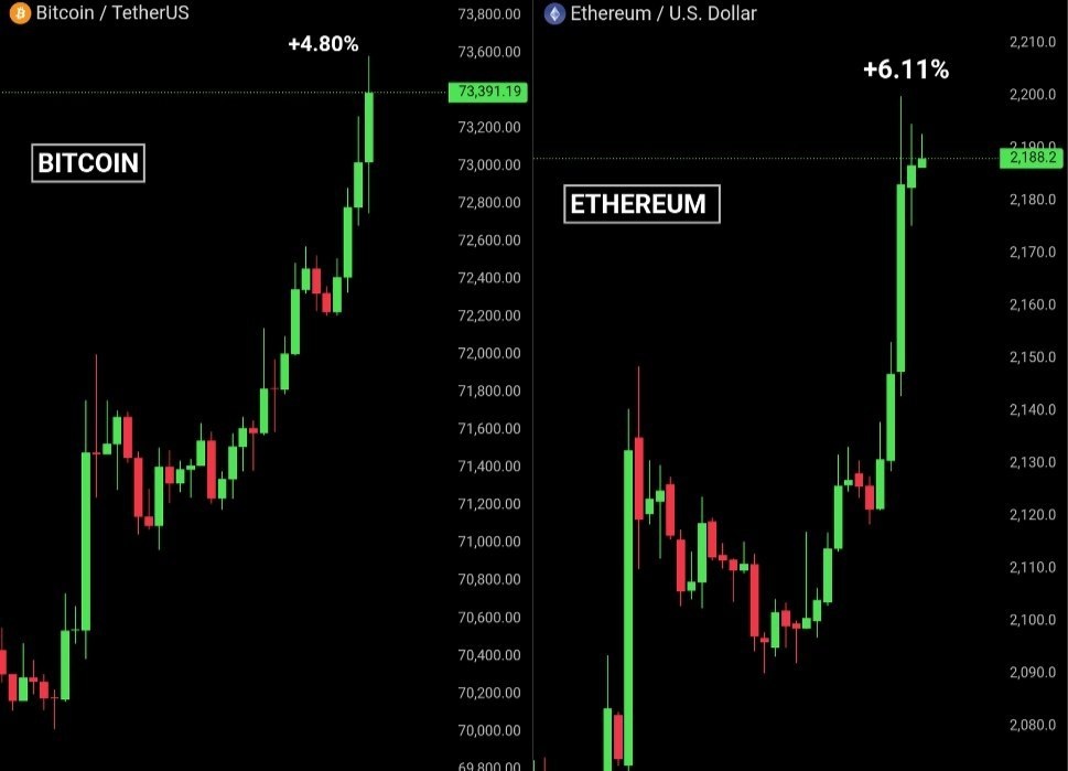 За последние 15 часов биткоин вырос на 4.80%, добавив $60 млрд к своей рыночной капитализации. Ethereum за последние 15 часов подорожал на 6.11%, увеличив капитализацию на $15.2 млрд. Капитализация крипторынка за последние 15 часов выросла на $90 млрд, что привело к ликвидации почти $200 млн в коротких позициях.