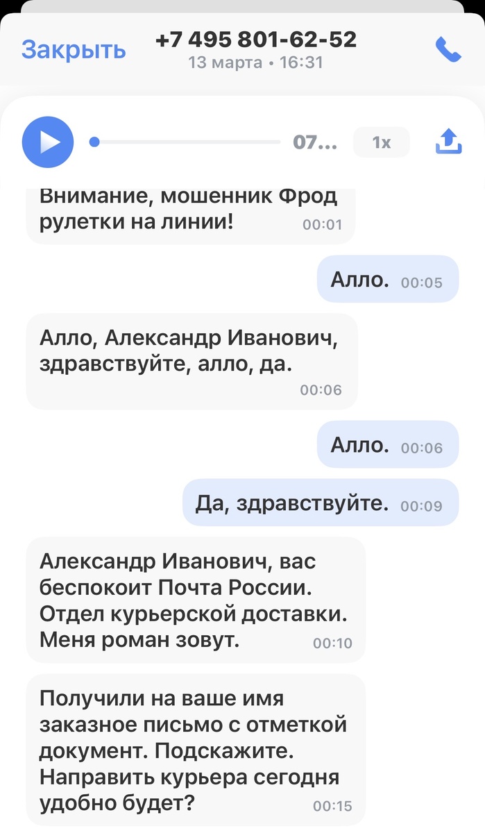 И так звонок, якобы с "Почты России", мошенники знаю персональные данные.