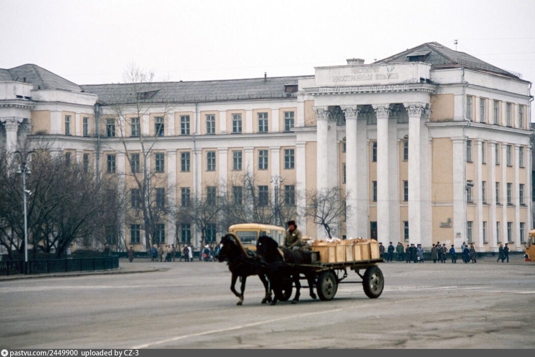 Ну, а мне тут просто попался снимок ин'яз-а на паствю.ком, где такие 90-ые годы, что... мне кажется, что я иду из школы (я училась тогда на Марата 11), стою, жду фыркающий и обшарпанный жёлтый автобус - двадцатку: