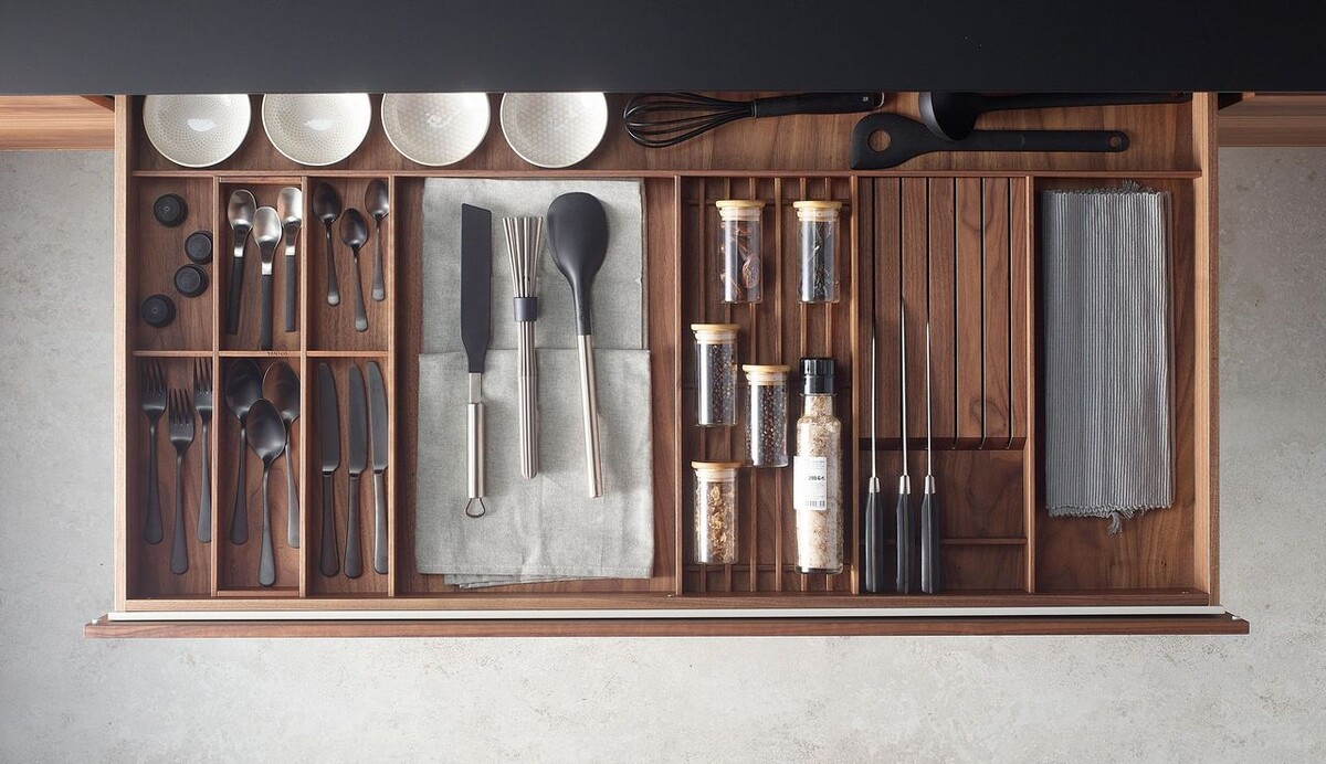 Кухня стоит несколько миллионов, фасады идеальные, техника премиальная — а ощущение дорогого интерьера всё равно не возникает. Причина часто скрыта там, куда гости почти не смотрят — внутри кухонных ящиков. Именно там формируется ощущение порядка, продуманности и уровня кухни. Дизайнеры интерьеров хорошо знают: если внутри хаос, пространство начинает «дешеветь». Разберем 7 самых частых ошибок, которые портят даже дорогую кухню. Самая распространенная ошибка. Когда внутри кухни за несколько миллионов лежит легкий пластиковый лоток из ближайшего магазина, возникает сильный визуальный диссонанс. Такие органайзеры: В премиальных кухнях обычно используют деревянные системы хранения, которые выглядят частью мебели. Большинство готовых органайзеров делаются под усредненные размеры ящиков. Из-за этого появляются: Дорогие кухни почти всегда используют лотки, сделанные под конкретный ящик, чтобы пространство работало на 100%. Часто отделения в органайзерах слишком узкие или слишком широкие. В ре