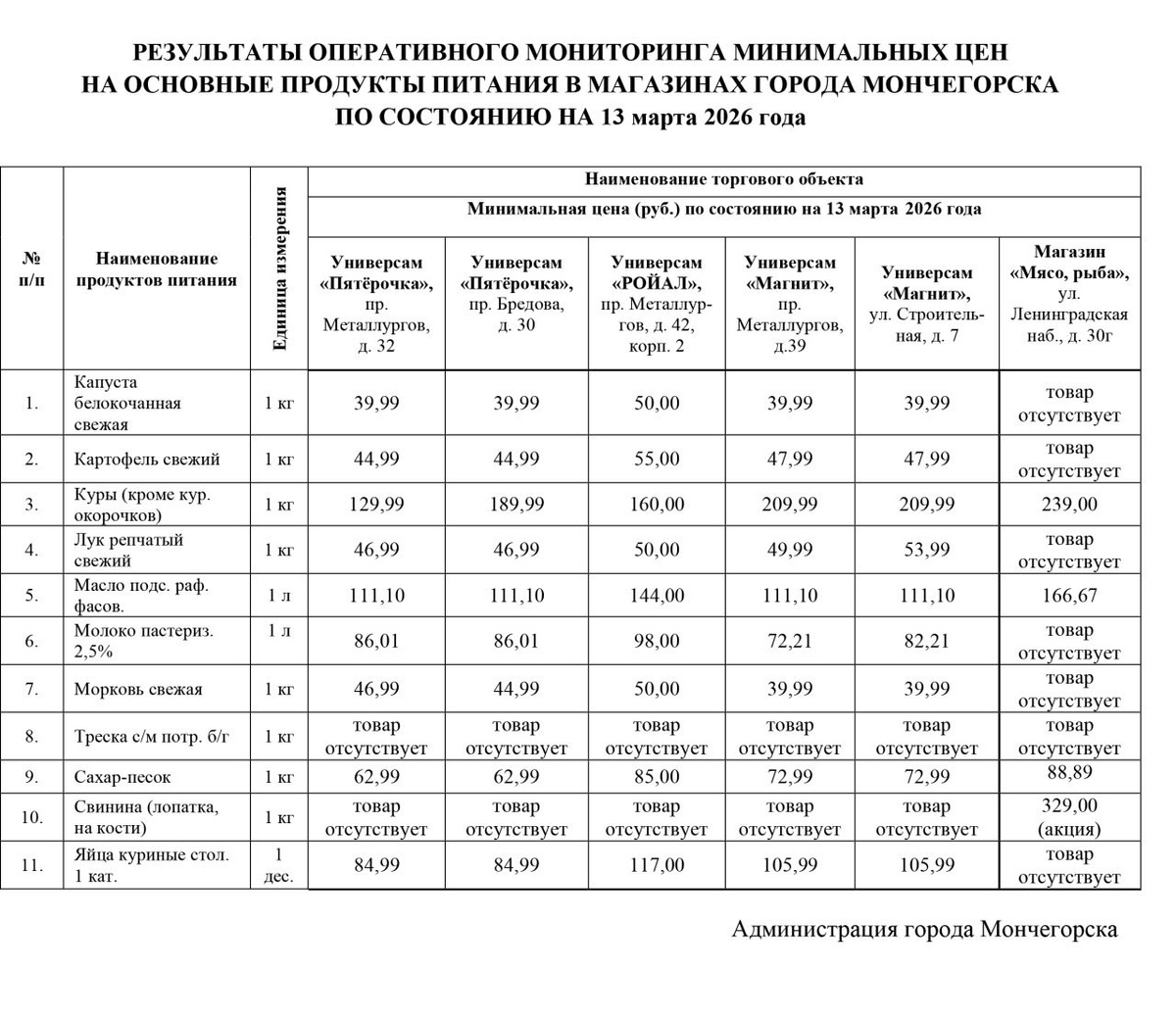 🍞🧀Что, где и почем купить в Мончегорске