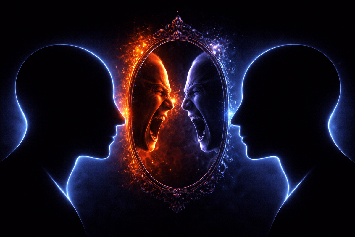 В прошлых частях мы уже поняли неприятное: спор редко про истину. Чаще — про статус, уязвимость, «не выглядеть слабым», и про те роли, которые мозг раздаёт быстрее, чем официант в ресторане. Но есть вещь куда интереснее. Спор — это зеркало. И оно показывает не то, что ты думаешь. А то, что у тебя болит. Если бы спор был просто разговором, мы бы спорили спокойно, как в инструкции к микроволновке: