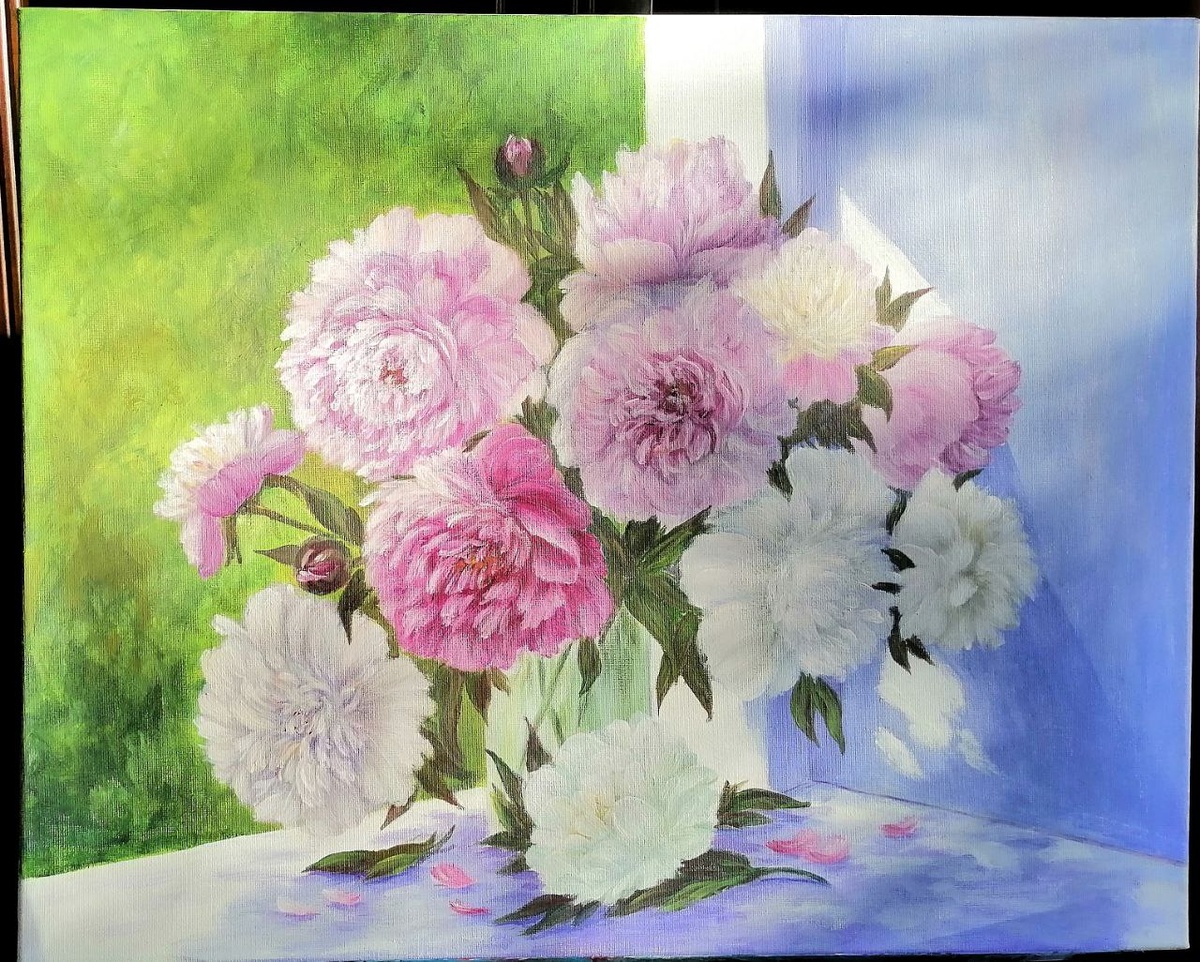 ! . У меня готова еще одна картина из курса Расцветай, школы А. Озеровой. . Акрил, 40х50см, холст на подрамнике. Цена 18000р. При бронировании предоплата 10%. . По всем вопросам в лс София Балушкина #букетпионов #картинаспионами #картинаакрилом #картинавподарок #точкиотсофико