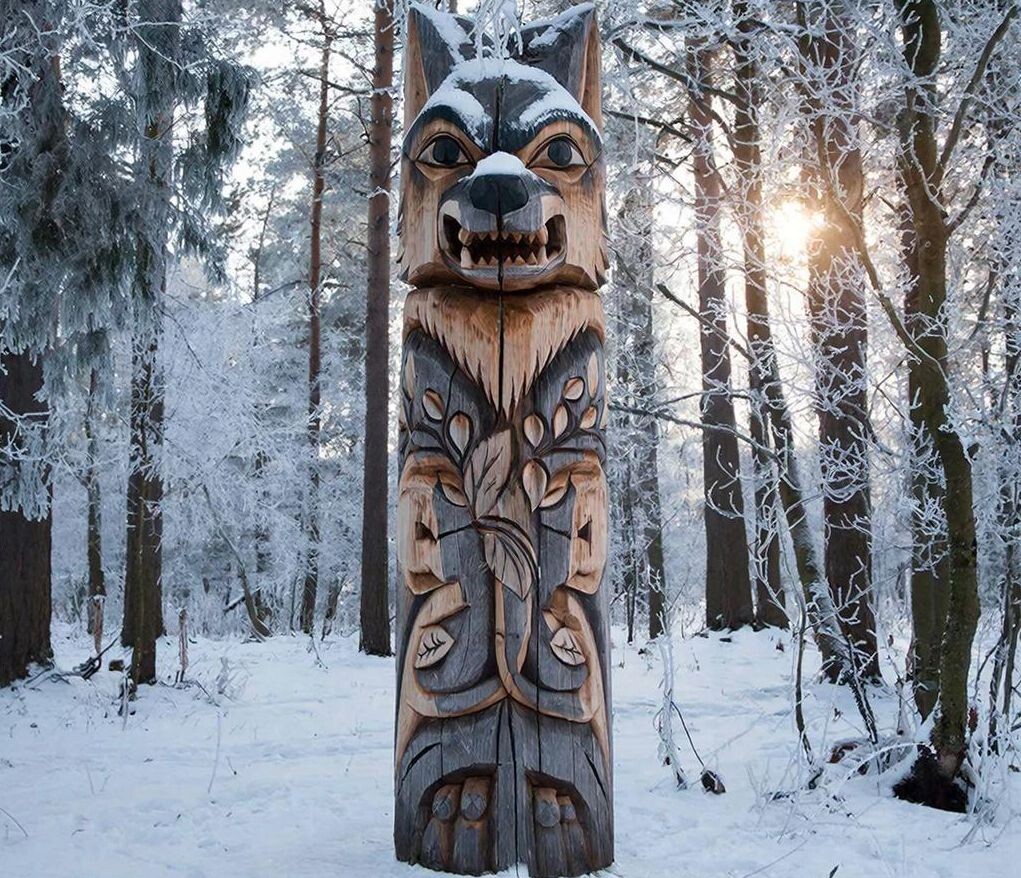 На другом континенте — у коренных художников Канады и Аляски — тема охотничьих тотемов вообще стала центральной. Современные мастера резьбы продолжают выводить на дереве фигуры ворон, китов и собак. Но если старые тотемы выглядели как семейные гербы, ныне их делают как экологическое предупреждение. Виртуальный тотем может вырасти в пустыне через дополненную реальность. Достаточно навести телефон — и перед вами появляется трёхметровый волк из света. Старая магия, переведённая на язык технологий.