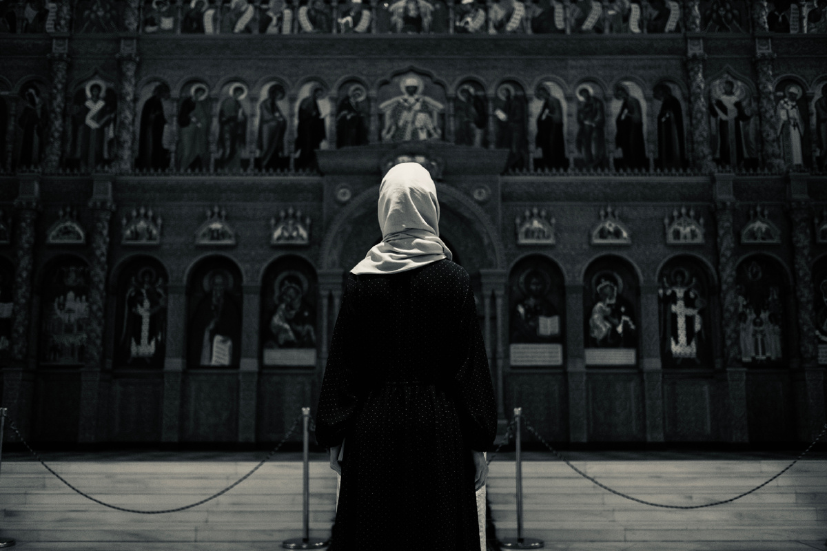 В музее темно. В церковной лавке — сувениры с блестками. Вокруг стоят люди с «умными» лицами, говорят сложные слова о каноне и символике.