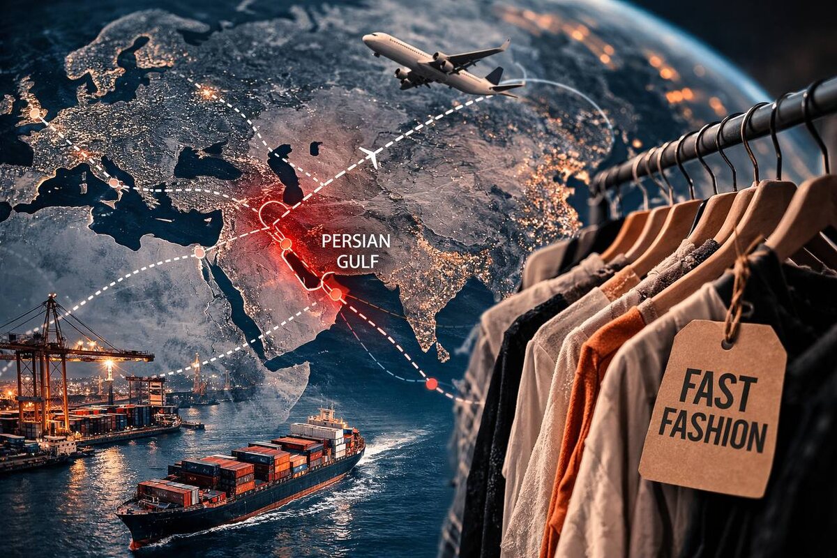 Тренды рождаются в социальных сетях, превращаются в одежду за считанные недели и появляются в магазинах быстрее, чем меняются алгоритмы. Со стороны кажется, будто вещи просто возникают в витринах и онлайн-магазинах. Но за этой скоростью стоит сложная глобальная система: фабрики в Азии, оптимизированные авиамаршруты, морские торговые коридоры и сильная зависимость от нефти. Поэтому, когда в одном из ключевых регионов мира возникает конфликт, это сразу отражается и на модной индустрии. Нынешняя напряжённость на Ближнем Востоке показывает, насколько fast fashion зависит от стабильности глобальной логистики. Сбои авиарейсов, рост цен на нефть и неопределённость вокруг морских маршрутов начинают подрывать основы этой модели. Большая часть одежды производится в Южной Азии — в Бангладеш, Индии и Пакистане — и нередко доставляется в Европу по воздуху, чтобы ускорить запуск коллекций. В этой системе ключевую роль играют логистические хабы Персидского залива, особенно Дубай. Когда рейсы отменя