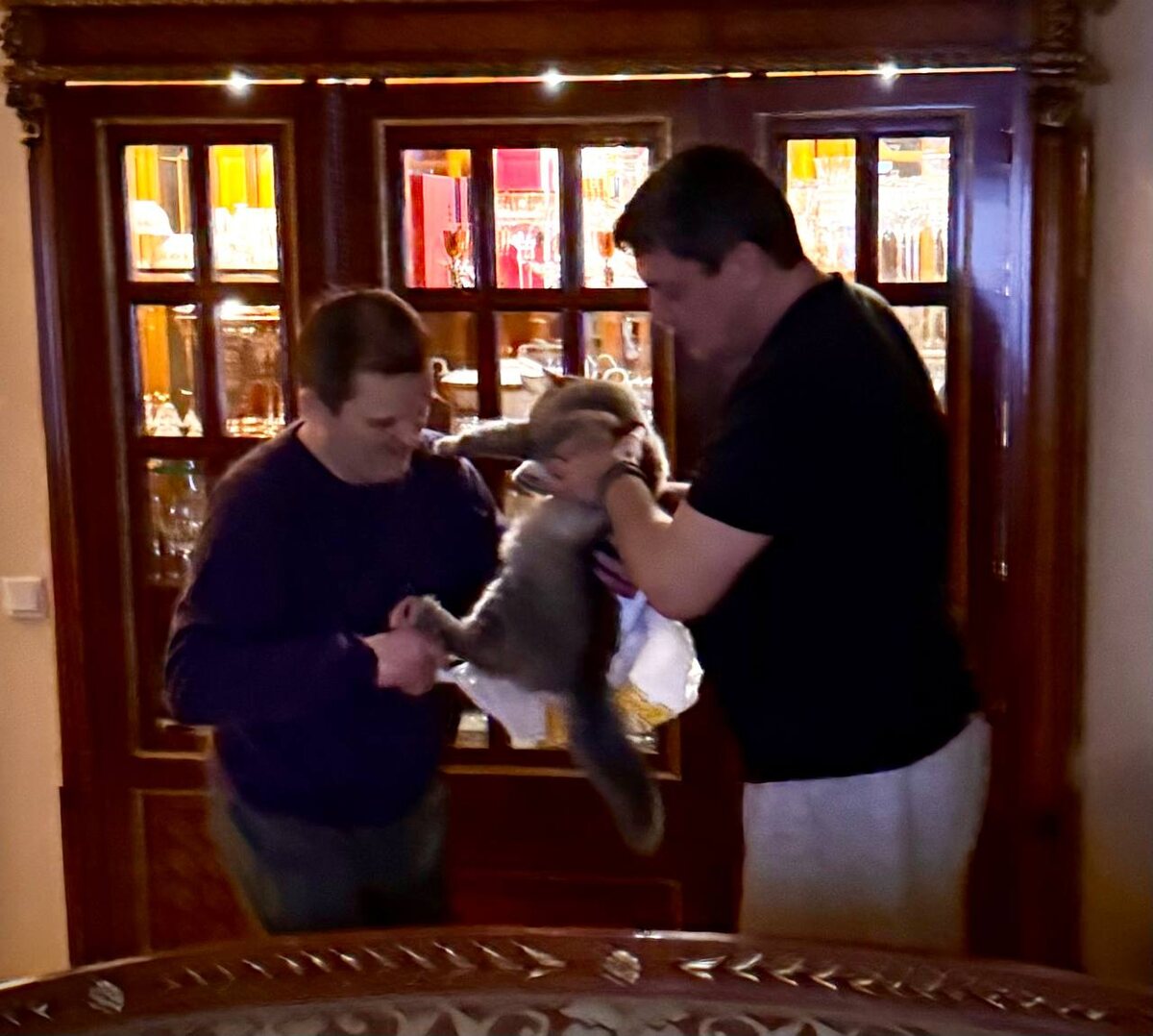 Попросите двух мужчин взвесить одну, согласились, немного буйную Кошку🐈 Думаете, они возьмут Кошечку🐈 на ручки, взвесятся сначала с ней, а