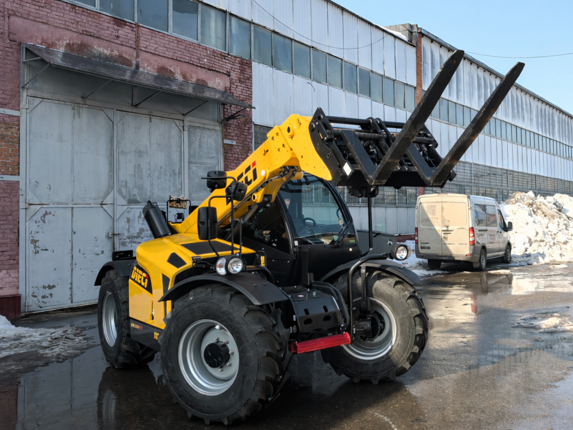 1. Dieci входит в топ-5 мировых производителей телескопических погрузчиков и выпускает в среднем около 3-4 тыс. машин в год, поставляя технику более чем в 70 стран мира. 2. Все телескопические погрузчики Dieci производятся только на одном заводе в Монтекио-Эмилия (Италия), площадь которого составляет более 120 тыс. м². 3. Ассортимент Dieci включает модели телескопических погрузчиков для сельского хозяйства и других отраслей грузоподъёмностью до 23 т (серия Hercules) и высотой подъёма до 40 м (серия Pegasus). 4. Самая популярная модель в России – Dieci Agristar 37.7: телескопический погрузчик грузоподъёмностью 3,7 т, высотой подъёма 7 м и гидростатической трансмиссией, которая не перегревается даже на длинных перегонах благодаря дополнительному охлаждению масла. 5. Самые востребованные погрузчики Dieci доступны в лизинг со ставкой удорожания от 3-4% через Росагролизинг (при аннуитетном платеже и авансе от 0/10%). На фото — телескопический погрузчик Dieci Agristar 37.7.