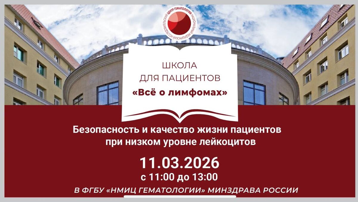 11 марта в Национальном медицинском исследовательском центре гематологии Минздрава России прошла IX Школа для пациентов «Все о лимфомах». Мероприятие проходило в очном формате с параллельной онлайн-трансляцией на платформах Zoom, ВК и на сайте организатора школы МОО Мост милосердия. В этот раз эксперты сосредоточились на теме, которая часто остается за кадром, — «терапии выхаживания». Они объяснили, почему период между курсами химиотерапии критичен и как нарушение простых правил может свести на нет все усилия врачей.