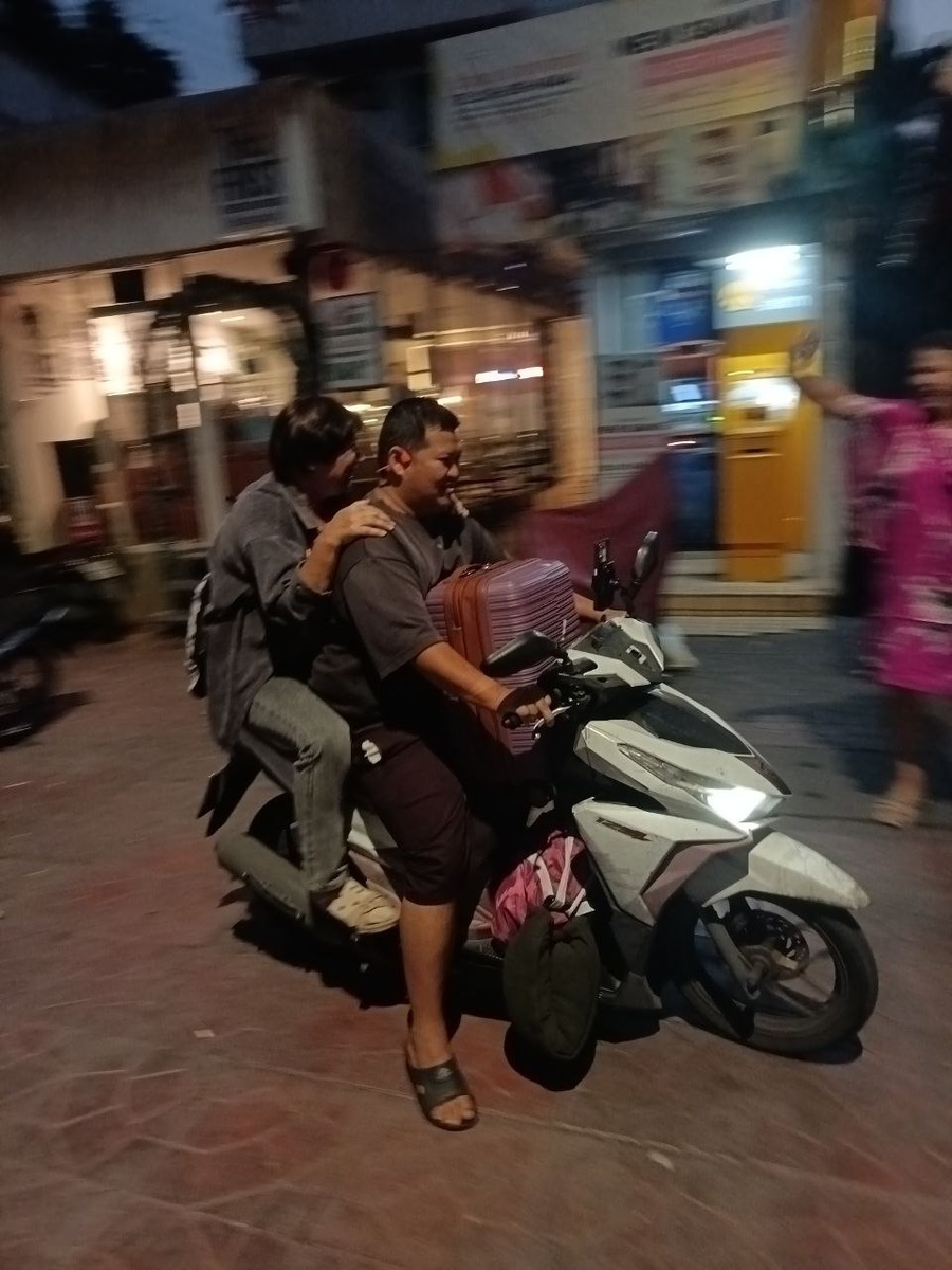 Я, конечно, такого не ожидала. У меня чемодан, 2 сумки, ноутбук за спиной - а тут байк. Но я с сумками как-то вместилась, и мы поехали.