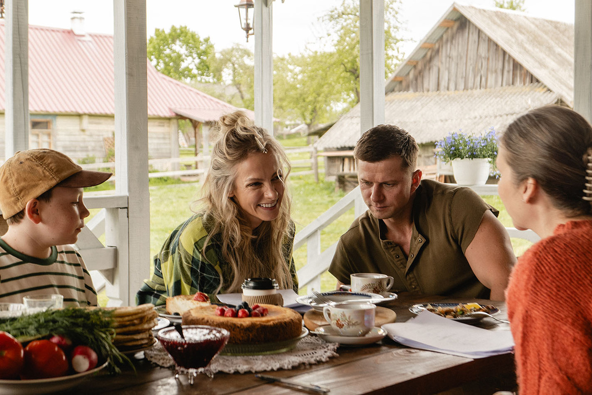 Это история о стюардессе Даше (Полина Максимова), вернувшейся в родные края, чтобы продать дом, доставшийся в наследство от бабушки, и расплатиться с долгами. Героиня приезжает в деревню, где встречает свою первую любовь – простого деревенского обаятельного сыровара Мишу (Роман Курцын). И он вместе с юным племянником Петровичем превращают сделку с недвижимостью в настоящее испытание. Со временем Даша начинает понимать, что родительский дом не продается. И, судя по трейлеру, в финале фильма главные герои сыграют свадьбу. Напомним, что ранее Курцын и Максимова играли пару в романтической комедии Кирилла Плетнева «Семь ужинов». Роман Курцын исполнил не только главную роль, но и выступил еще продюсером. Рассказывая о своем персонаже, актер отмечает, что Миша – весьма противоречивый человек, давно сделавший выбор в пользу деревни. Глядя на него, понимаешь, что в этом и есть огромное счастье – жить настоящим, заниматься любимым делом, быть частью общины. Думаю, многие городские жители в глуб