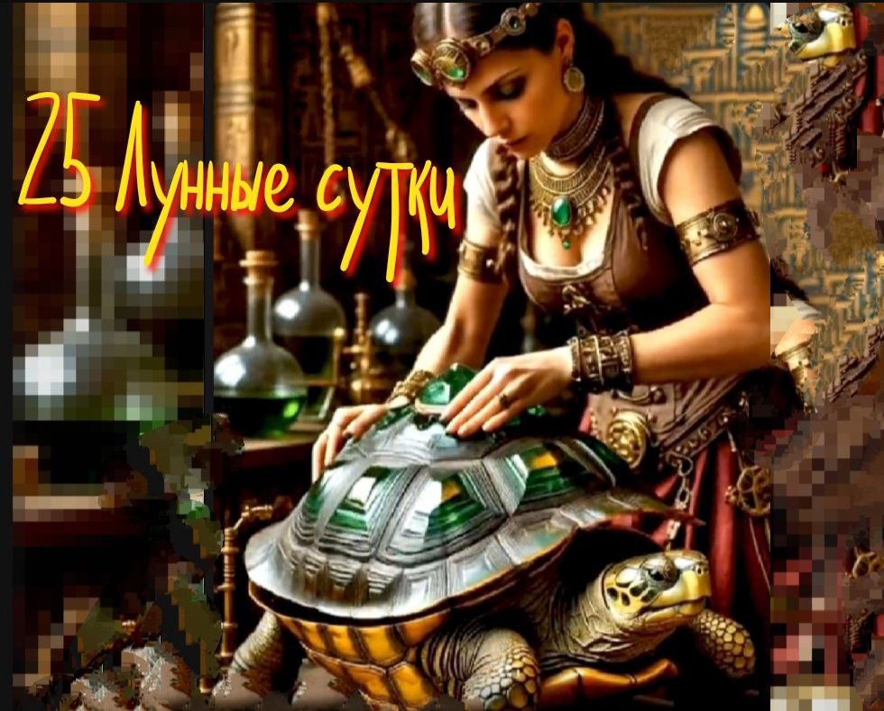 25 Лунные сутки Начнутся в 6 :42 Убывающая Луна в Козероге «ЧЕРЕПАХА» Это лунные сутки пассивности. Лучше никуда не спешить и если есть возможность провести день в одиночестве. Не надо начинать ничего нового, но уже начатое следует завершить. Делайте всё спокойно и неторопливо. Любая суета ни к чему хорошему не приведет. А вот тот, кто не будет прилагать ни к чему чрезмерных усилий, на удивление легко достигнет цели, которая реализуется, словно по волшебству, сама собой. День хорош для неспешных прогулок, размышлений, медитации, а также для оздоровительных мероприятий, не требующих чрезмерного напряжения.