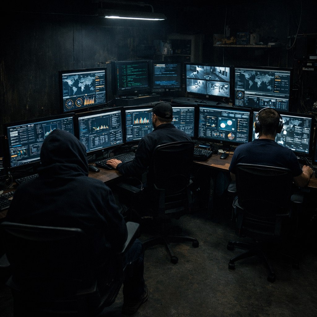 Помещение напоминало командный пункт - десятки экранов, на которых мелькали лица, цифры, графики. Люди в наушниках сидели за компьютерами, не отрывая глаз от мониторов. Воздух гудел от работы вентиляции, так как окон не было.