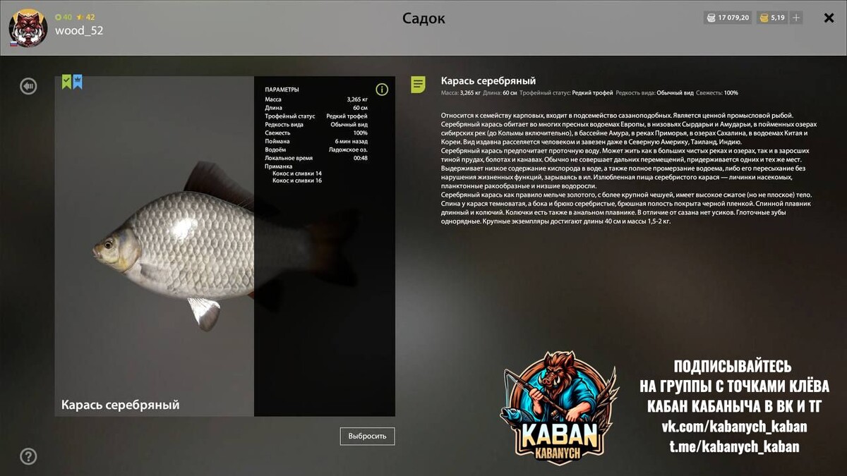 🏞 Ладожское озеро 🐠 Редкий трофей Карась серебряный🏆 📍 43:70 🗺 D3 ⚙️ Клипса 8 🎣 На скринах ⏱️ 30 минут 💬 1 синяк очень рад))) всем нхнч 📝 Предложить пост 🤝 Поддержать канал 🔍 Поиск по водоёмам