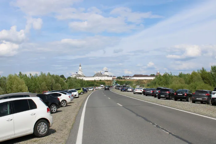 Наконец-то мы вплотную приблизились к давней нашей мечте — осмотреть достопримечательности острова-града Свияжск. Остров находится недалеко от Казани, приблизительно в 50-ти километрах, в заливе реки Волга. Вообще, этот день был плодотворным для нас. Мы посетили сразу несколько достопримечательностей Татарстана: Храм всех религий, Зилантов женский монастырь, Раифский мужской монастырь, этнографическую деревню Татар Авылы. И, наконец, добрались до Свияжска. Количество машин на подъезде к Свияжску говорило само за себя — это место пользуется популярностью среди автотуристов. Чтобы не лезть в самую кучу, мы остановились где-то за километр до города. Ещё издалека Свияжск поразил нас своим великолепием.