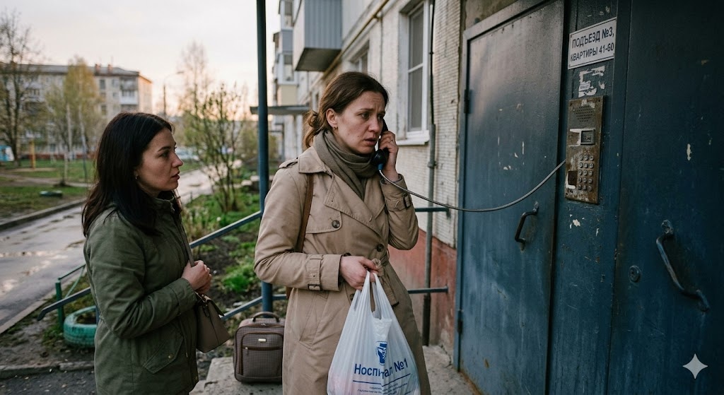 Когда они подошли к подъезду, Рита нажала кнопку домофона и приложила палец к губам.