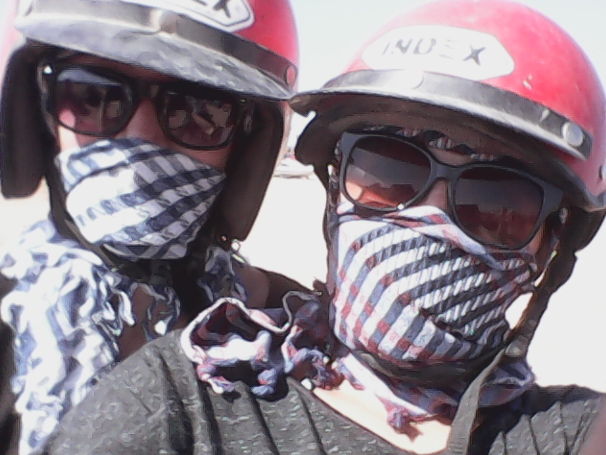 Итак, нас привезли на точку сбора , здесь нужно было приобрести арафатку . Это обязательно, иначе рискуете набить полный рот песка .Далее вам помогают ее намотать ,выдают шлем, инструктаж и вы рассаживаетесь по транспорту и выезжаете.