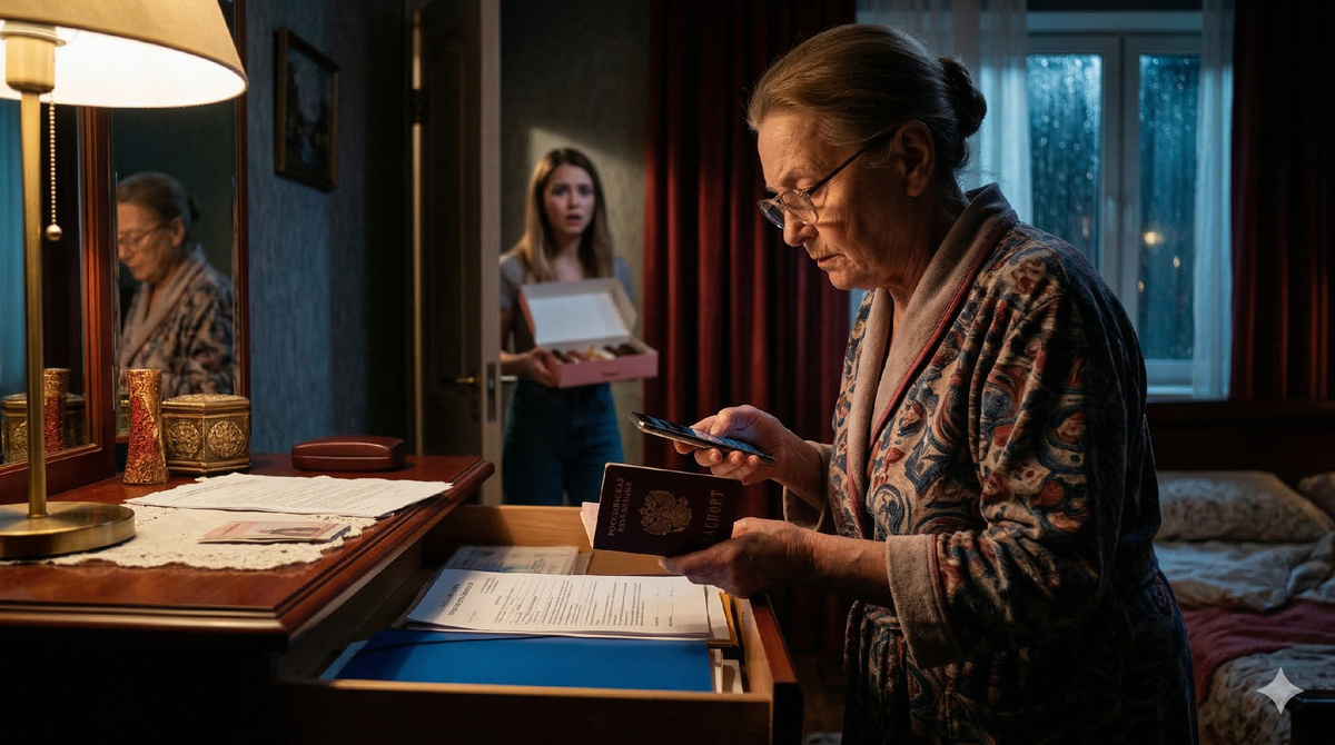 Зинаида Павловна надела на нос свои очки с толстыми стёклами. В одной руке она держала мой паспорт, открытый на странице с пропиской, а в другой — свой смартфон. Я чётко услышала характерный звук затвора камеры на телефоне. «Щёлк». Она перевернула страницу моего паспорта. Ещё один «щёлк». Затем она отложила паспорт, порылась в папке и вытащила сложенный вдвое лист бумаги. Я с ужасом узнала его — это был договор купли-продажи нашей квартиры. Она развернула его, разгладила рукой и снова навела камеру смартфона. «Щёлк».