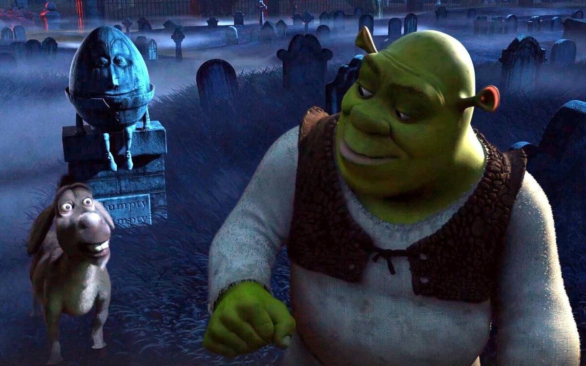 ? В короткометражке 2003 года "Шрэк: Призрак Лорда Фаркуада" (другие названия Шрэк 4-D и «Шрек: Медовый месяц») в одной из сцен можно заметить могилу Шалтая. Среди фанатов франшизы нет четкого мнения, является ли данная короткометражка каноном или нет. Но в любом случае забавно было обнаружить ранний взгляд на персонажа, который появился во франшизе кратно позже. Выглядит он совершенно иначе. Гораздо более жутко и старше своей версии из мультфильма 2011 года. Кстати, Осел случайно разрушил его могилу. Сомневаюсь, что стоит прям серьёзно воспринимать эту отсылку, ибо даже если короткометражка каноничная, явно произошел реткон. По факту, даже место не подходящее для могилы персонажа. Ну а на те времена это просто было отсылкой к известному литературному персонажу, явно не было планов его потом как-то использовать. Мы, кстати, всей семьей пересмотрели недавно всю серию мультфильмов «Шрэк» и снова осознали, что это замечательный мультфильм 😍