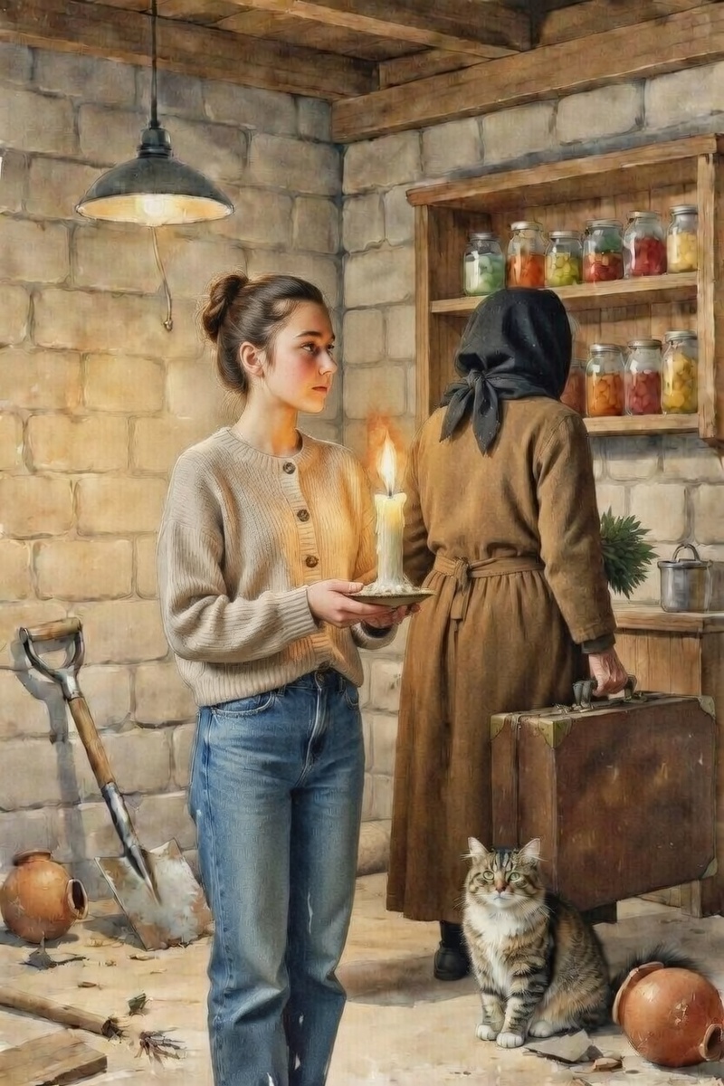 Подвал был маленьким, три на четыре метра, с низким потолком и земляным полом. Дом старый, фундамент ненадёжный. Единственная лампочка висела на шнуре. Я нашла выключатель и щёлкнула им. Лампочка загорелась и покачалась на шнуре.