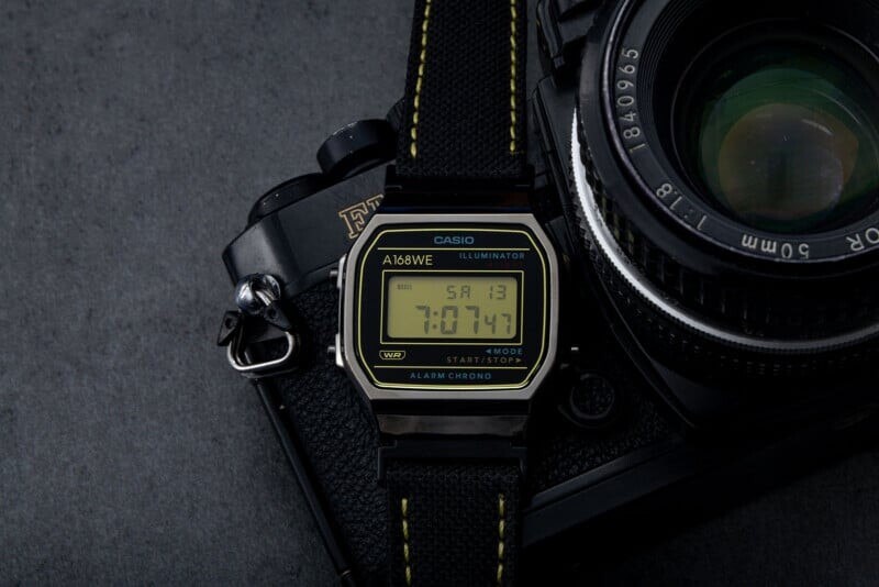 ✨ PPP Cameras представляют N168 — кастомные часы, вдохновленные Nikon! Эти стильные часы обладают черно-желтой цветовой схемой и удобным