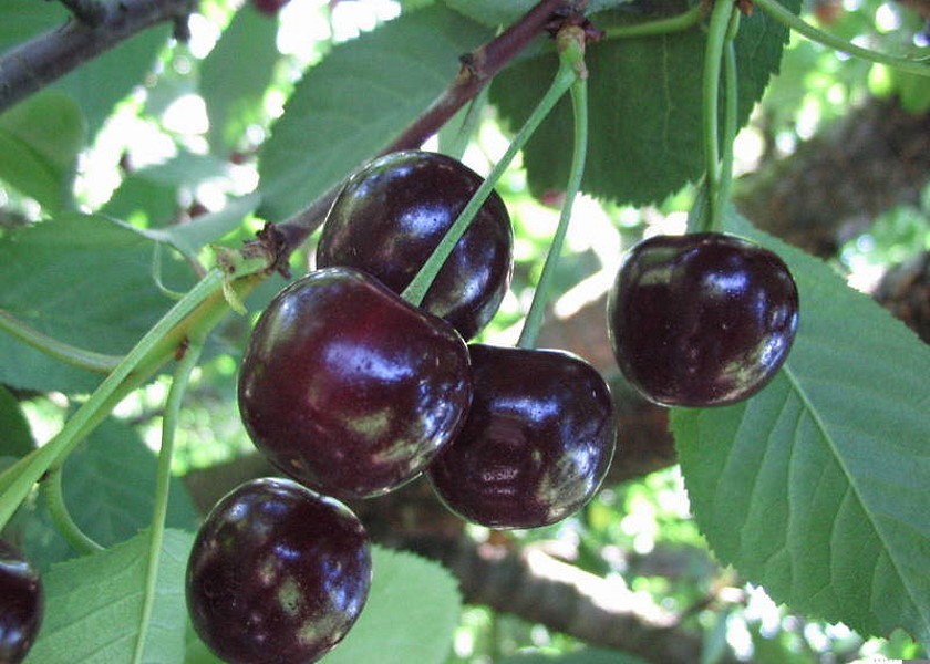 Дерево среднерослое, с приподнятой кроной — очень удобное для ухода. Плоды крупные (4,8–5,1 г), округлые, темно-красные, очень привлекательные. Мякоть плотная, сочная, темно-красная, сок темно-красный. Вкус — десертный, с высокой сладостью и едва уловимой кислотой. Это уже сорт универсального назначения, но его высокие технологические качества и хорошая транспортабельность делают его пригодным и для свежего рынка, и для переработки.