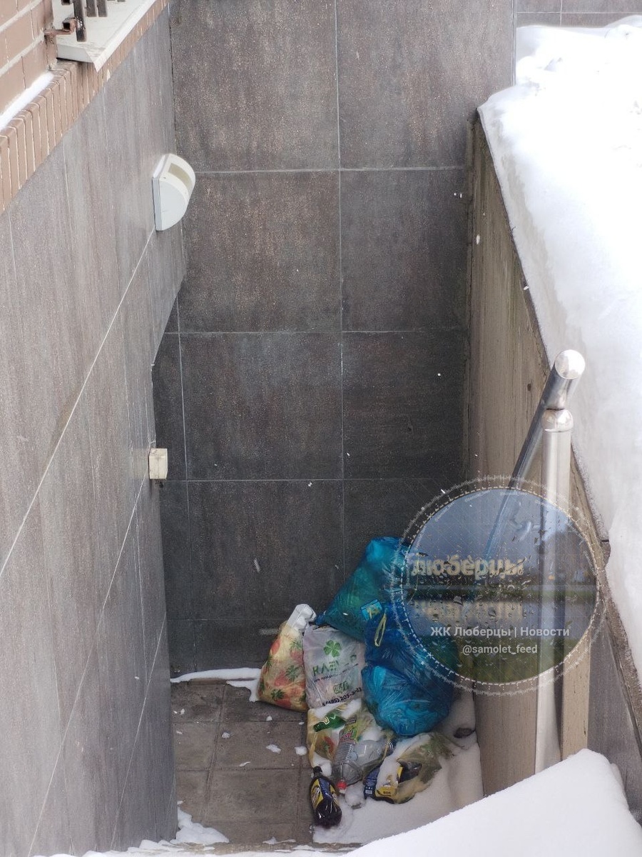 Соседи предполагают, что мусор выкидывают из окна.