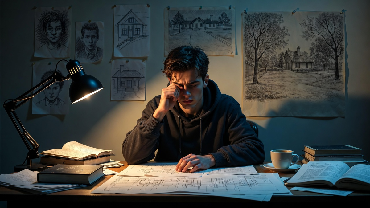 Первая сессия в МАрхИ оказалась страшнее, чем Ваня ожидал. Он готовился к тому, что будет трудно. Но чтобы настолько — не представлял. Проекты, чертежи, макеты, теория, история архитектуры, сопромат. Всё смешалось в голове в какой-то немыслимый коктейль из линий, цифр и формул. Последнюю неделю перед экзаменами он почти не спал. Сидел ночами над чертежами, переделывал, исправлял, снова переделывал. Глаза красные, руки в туши, голова уже не соображала. — Ваня, ложись спать, — уговаривала Катя, заходя в комнату. — Мам, не могу, — отмахивался он. — Завтра сдавать, а у меня ещё половина не готова. Алексей заходил, смотрел, давал советы. Иногда молча садился рядом и помогал — не делал за сына, но подсказывал, как лучше, как правильнее, как профессора любят. — Не зазубривай, — говорил он. — Понимать надо. Архитектура — это не формулы, это чувство. — А сопромат — это формулы, — вздыхал Ваня. — Сопромат — это тоже чувство, — усмехался Алексей. — Чувство, где стена выдержит, а где упадёт. Егор