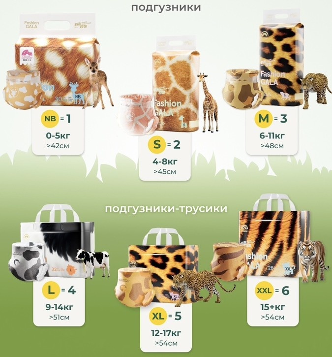 Чтобы родителям было проще подобрать подходящий вариант, мы сделали travel-наборы по 3–4 подгузника.