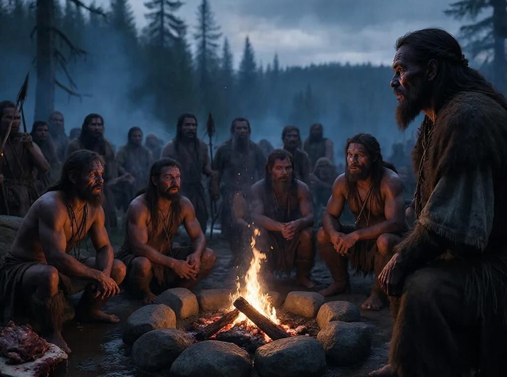 Долгое время слова были просто звуками. Команды, крики, короткие описания. Но в момент, когда охотнику нужно было передать опыт — показать, где упал зверь или какая тропа безопаснее, — язык стал сердцем общения. Не ради украшения, а ради выживания.