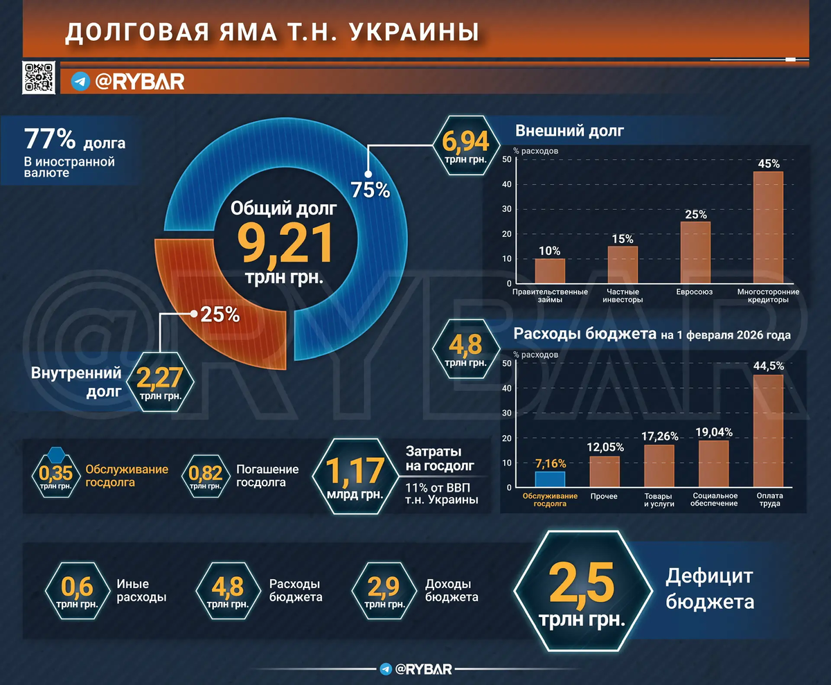 В контексте вопросов о будущем т.н. Украины большую роль играет то, как страна будет расплачиваться с ранее набранными долгами. Уже в этом году для покрытия дефицита бюджета правительству придется искать за границей почти три триллиона гривен, и от года к году ситуация будет только ухудшаться. ❓Почему украинские власти не могут выбраться из «кредитной ямы» и как иностранные деньги становятся рычагом давления — разобрали на нашем канале в МАХ.
