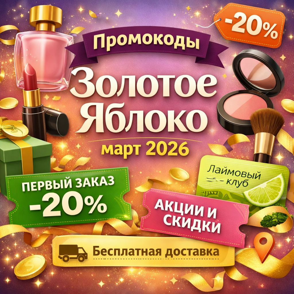 Актуальные промокоды Золотое Яблоко на март 2026: скидки на первый заказ, акции, бонусы, доставка и условия применения.