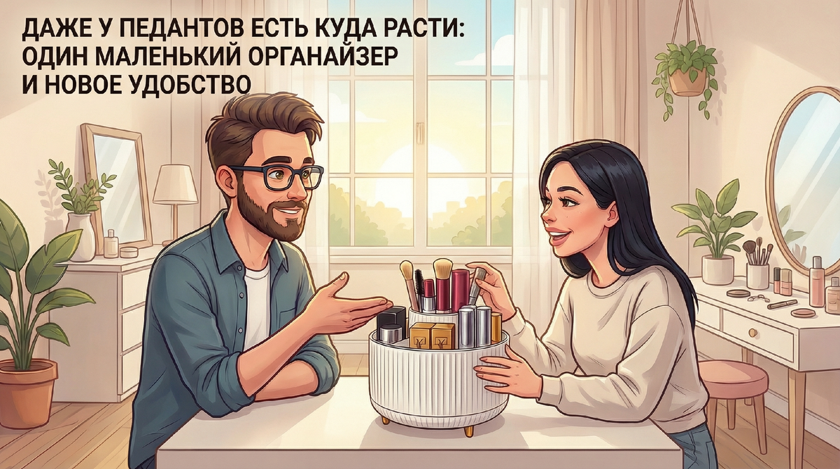 Честно признаться, я всегда считал, что навести порядок — это просто вопрос привычки. Ну, хочешь не искать крем — поставь на своё место, заколки держи в коробке, а помады пусть лежат отдельно. У Насти, моей жены, вообще всё всегда идеально разложено, даже немного по-смешному: каждый предмет на своём месте, никакой лишней суеты.