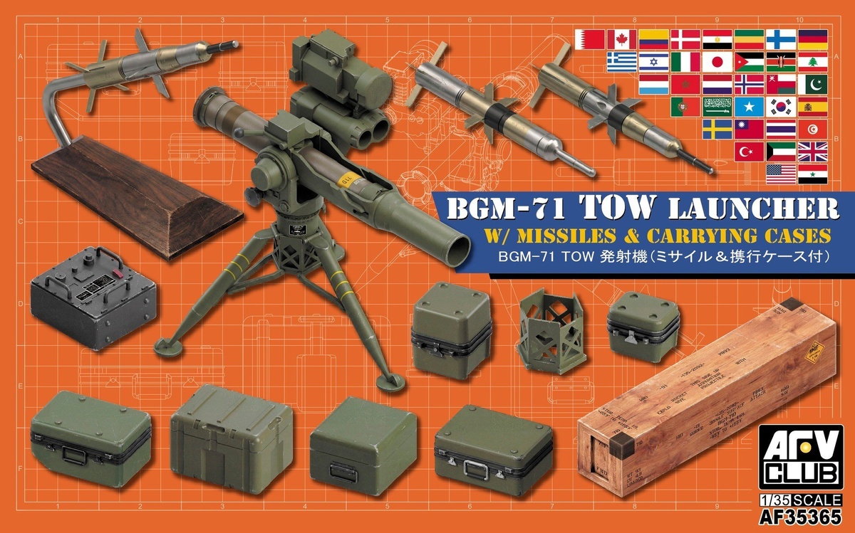 AFV CLUB с острова Тайвань выпустила набор с моделью пусковой установки BGM-71 TOW, ракетами и транспортировочными кейсами в масштабе 1/35: