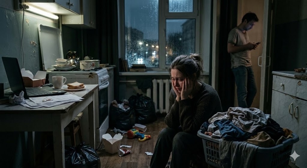 Дома её ждал не уют, а бытовой ад. Артем не помыл ни одной тарелки за неделю. В раковине зародилась новая жизнь, а в холодильнике засохла половинка лимона.