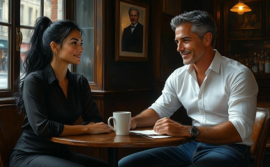 - Как тебе кафе? Не слишком пафосное? - с улыбкой спросил Алекс, его глаза блестели в полумраке зала.