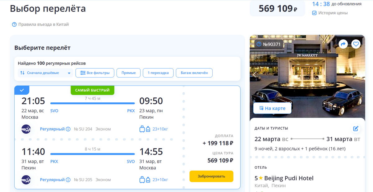 Смотрю сегодня, точнее вчера и не верю своим глазам, если взять прямой перелет Аэрофлота из Москвы в Пекин, то 569 т.р., больше полмиллиона