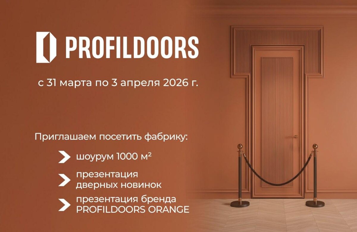 ! Приглашаем вас на домашнюю выставку дверных решений и перегородок, которая пройдет с 31 марта по 3 апреля 2026 года. Мероприятие состоится на нашей площадке в шоуруме фабрики PROFILDOORS. В обновленном шоуруме площадью 1000 кв. м. будут представлены самые модные и инновационные дверные решения. Программа выставки: * Презентация новых направлений от PROFILDOORS: шпон и эмаль. * Презентация нового бренда PROFILDOORS ORANGE. На площадке шоурума вас будут консультировать эксперты. Весь шоурум будет в вашем распоряжении на протяжении всей выставки. До встречи на фабрике ❤️PROFILDOORS! Мы в МАХ 🇷🇺