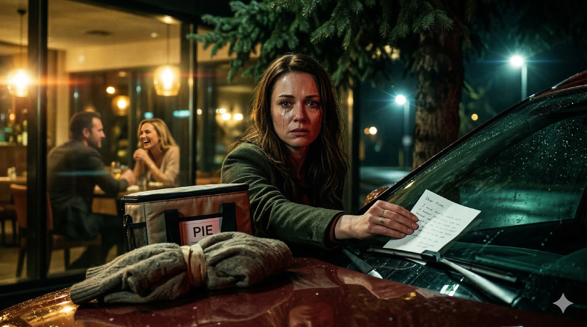 Я положила пакет со свитером на капот его машины. Сверху поставила термосумку. И подсунула записку под дворник.