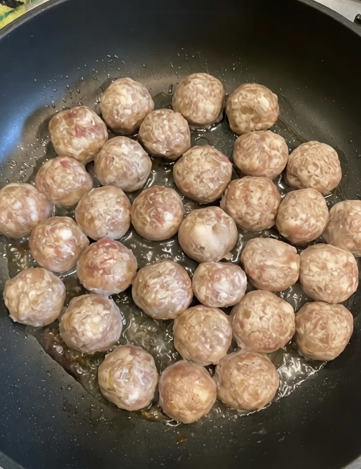 Перед тем как варить фрикадельки, можно обжарить их на сковороде буквально 1 минуту.