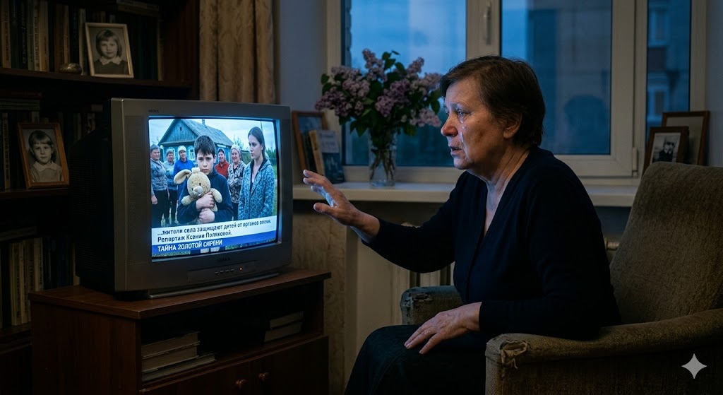 В ту же минуту в далеком областном центре пожилая женщина, Антонина Петровна, вскрикнула, увидев экран.