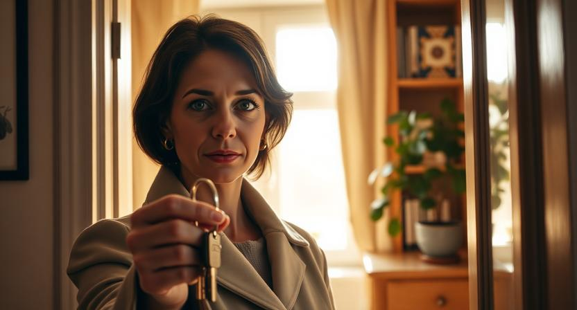 Она стояла у двери и долго смотрела на этот маленький металлический предмет. Что-то такое происходило внутри — не слёзы, нет. Скорее — освобождение. Как будто долго несла тяжёлый рюкзак и наконец поставила его на землю.