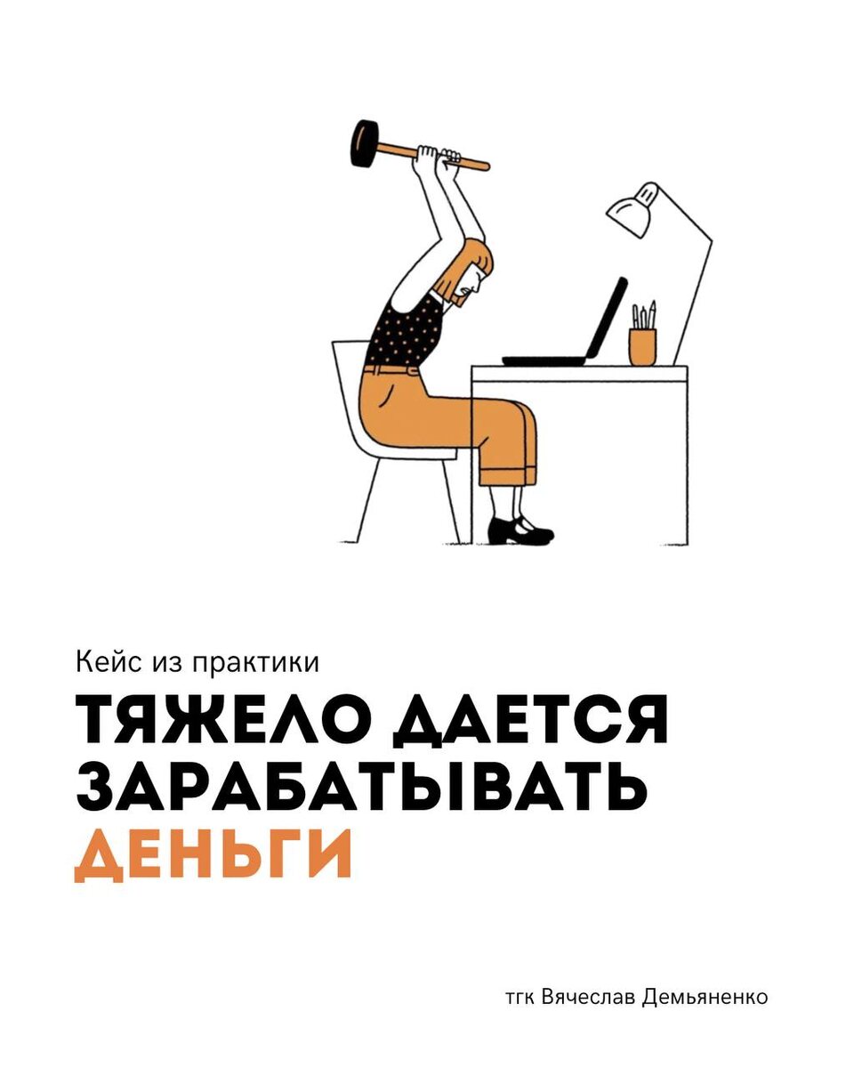 Такой запрос был у пациента год назад. И в истории семьи, будто бы, прослеживался такой же сценарий. ❗️Тут сделаю отступление, что тяжело зарабатывать деньги – для всех понятие растяжимое. Кто-то 6 часов в офисе отработал, 5 дней в неделю и лежит пластом, а кто-то по 10-12 часов без выходных и умудряется еще встречаться с друзьями, путешествовать и т.д. Оба они скажут, что деньги даются тяжело и ОБА будут правы, важно лишь то, что происходит в вашей психической реальности. Отсюда пытаться считать чужие деньги и оценивать образ жизни – бессмысленно, вы не знаете ни условий, ни принципов функционирования психики, ни экономики энергии этого человека 🙌🏻 🟠Пациент работал тогда в известной компании и был одним из партнеров-основателей, задача его была – растить бизнес, который расти никак не хотел. ✔️Стоит упомянуть, что в партнерах было еще два человека, каждый отвечал за свою часть, но самое плотное взаимодействие было с женщиной. Пока женщина была включена, бизнес рос, и пациент делал