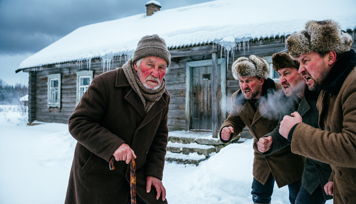 — Эй, старый хрыч! Выходи! — гаркнул шрамовый, его голос разрезал морозный воздух, вспугнув ворон с ближайших берез. — Мы знаем, что у тебя есть золото. Отдавай по-хорошему, пока цел остался.