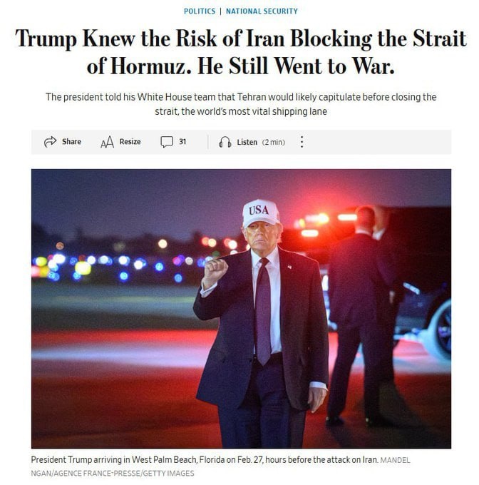 'Told team Tehran would CAPITULATE before closing Strait of Hormuz'