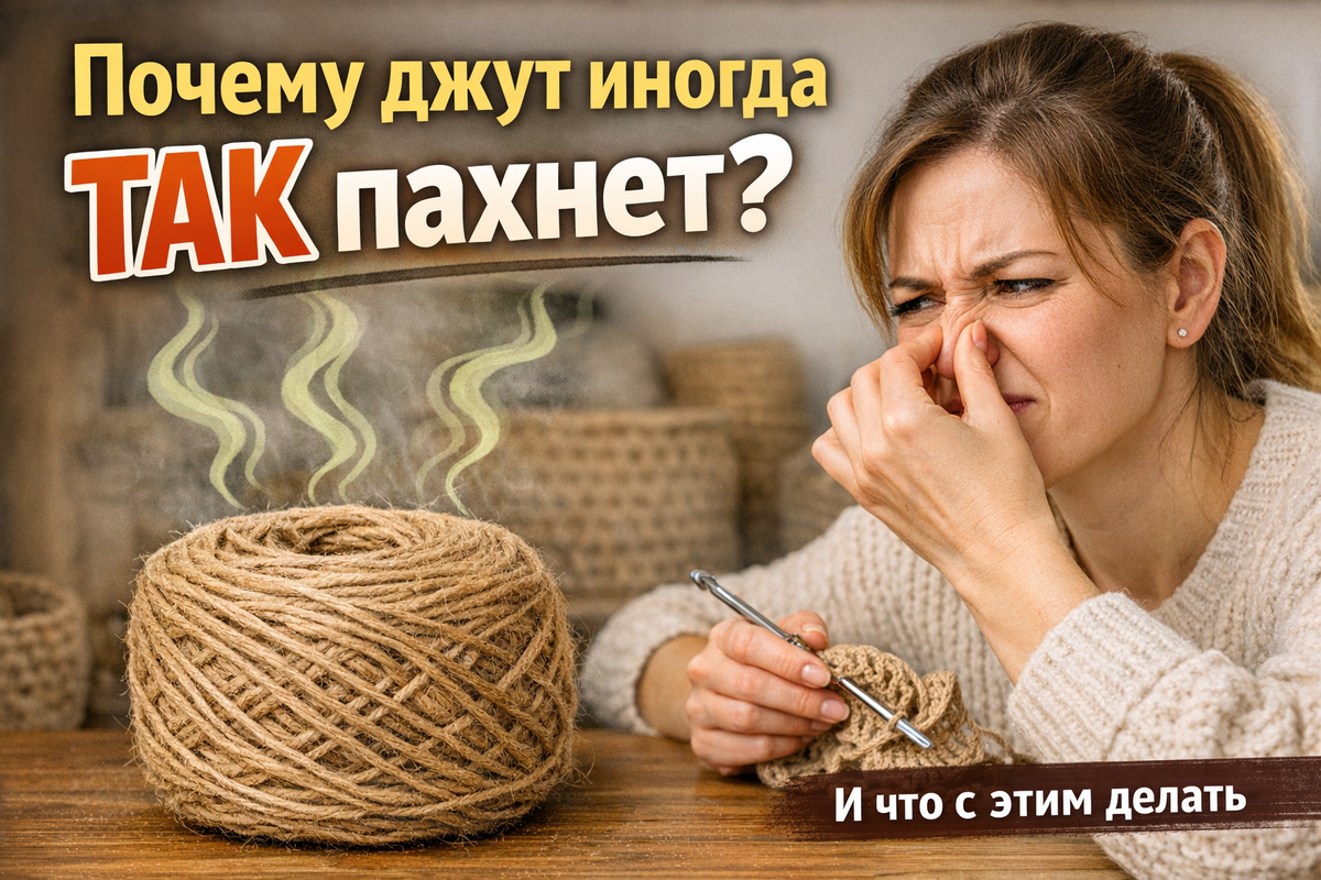 Если вы хоть раз вязали из джута, то наверняка замечали: иногда моток пахнет приятно — чем-то природным, травянистым, а иногда… мягко говоря, не очень. Некоторые мастерицы даже пишут: «Открыла упаковку — и запах на всю комнату».
