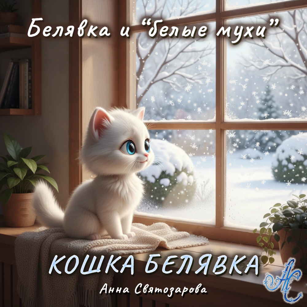 Это маленький котёнок Белявка. Самая белая и пушистая кошечка на свете, если не считать розового носика и тех мест, куда она умудрялась залезть. А залезала она везде: в дедушкины тапки, в коробку с бумагами, в большое кресло у окна, где можно было спрятаться так, что виден только кончик хвоста. Белявка сидела на подоконнике. Подоконник был широкий и тёплый, потому что под ним пряталась батарея. Дедушка Сергей Владимирович специально положил туда маленькое одеяльце, чтобы Белявке было мягко и тепло. Она очень любила это уютное место. За окном падало что-то белое. Много белого, очень много. Белявка прижалась носом к стеклу и замерла. Этого белого за окном было так много, что весь воздух превратился в белую кашу. - Дедушка, закричала Белявка, спрыгивая с подоконника. Там белые мухи. Весь двор в белых мухах. Дедушка Сергей Владимирович сидел за столом и смотрел в свой ноутбук. На носу у него были очки, а пальцы быстро стучали по клавишам. Но когда Белявка закричала, он сразу повернулся и с