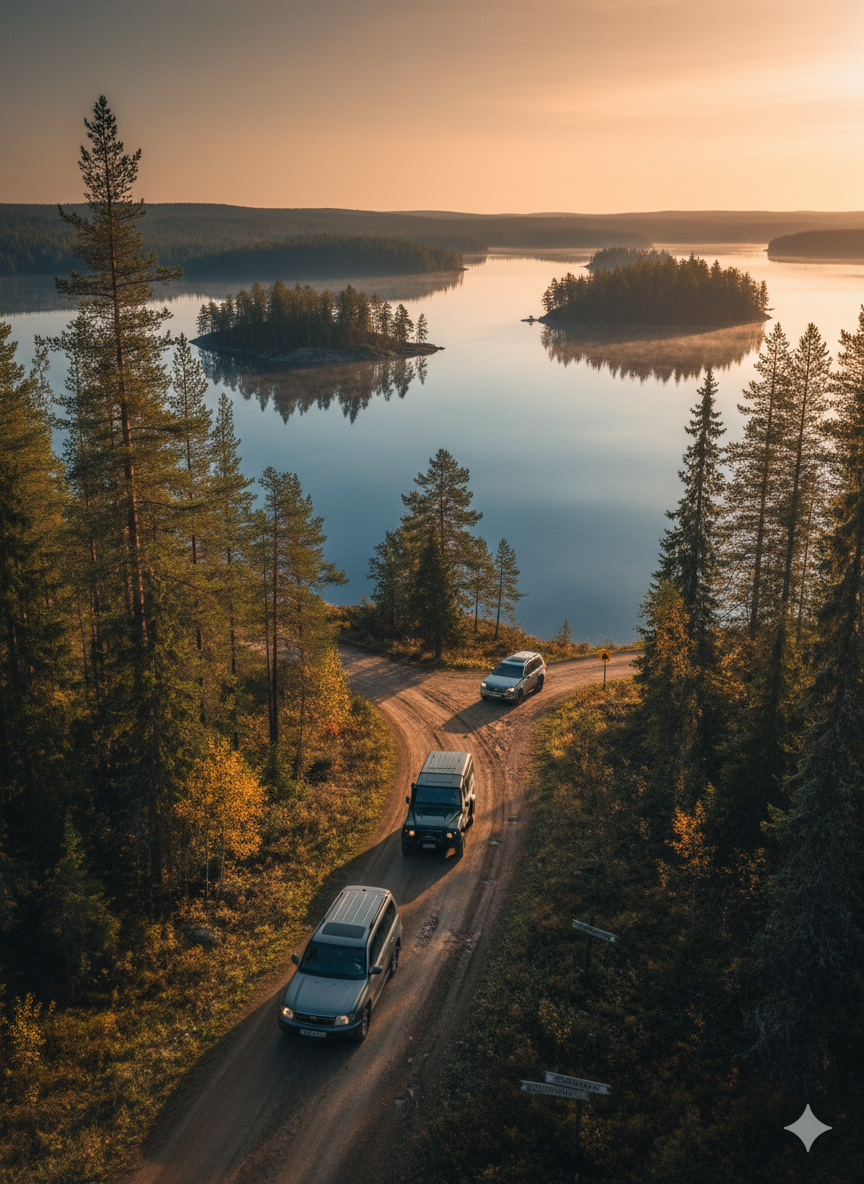 - Нужен ли внедорожник для путешествия по Карелии на машине? Главные трассы — Р-21 и А-121 — отличного качества, легковушки ездят без проблем. Внедорожник нужен только для Воттоваары и мыса Бесов Нос, куда ведут разбитые грунтовки.