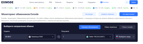 Для безопасного выбора обменника стоит ориентироваться на проверенные платформы. Например, Exnode собирает актуальные данные о криптообменниках в России на наличные, публикует рейтинги, резервы валют и отзывы пользователей. Это упрощает сравнение предложений и помогает найти оптимальный сервис для обмена криптовалюты на рубли или доллары.