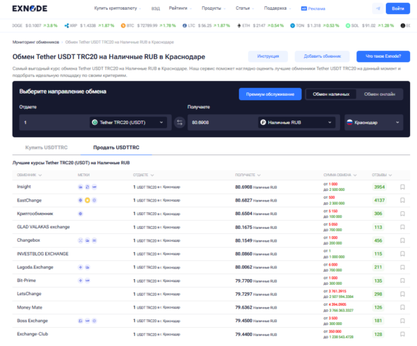 Сегодня обменники криптовалют в Краснодаре предлагают различные форматы работы: от быстрых операций с наличными до комплексного сопровождения сделок с крупными суммами. В этом вопросе помогает платформа Exnode, которая стала удобным инструментом для анализа рынка. С её помощью можно сравнить курсы, изучить репутацию сервисов и подобрать подходящие обменники крипты в Краснодаре. Площадка позволяет быстро определить, где сегодня наиболее выгодно провести обмен криптовалюты в Краснодаре, а также узнать, какие точки работают с нужными активами.